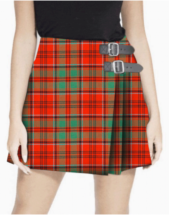 The Grant Ancient Tartan Women Kilt is made out of acrylic wool which is also known as 100% pure wool fabric.It has two leather straps and two chrome metal buckles on the side of the kilt. These straps not only look good but also provides better fit and comfort to the wearer. This kilt is a little higher than our usual kilts because it is specially designed for women. However, you can customize it according the way you like it.